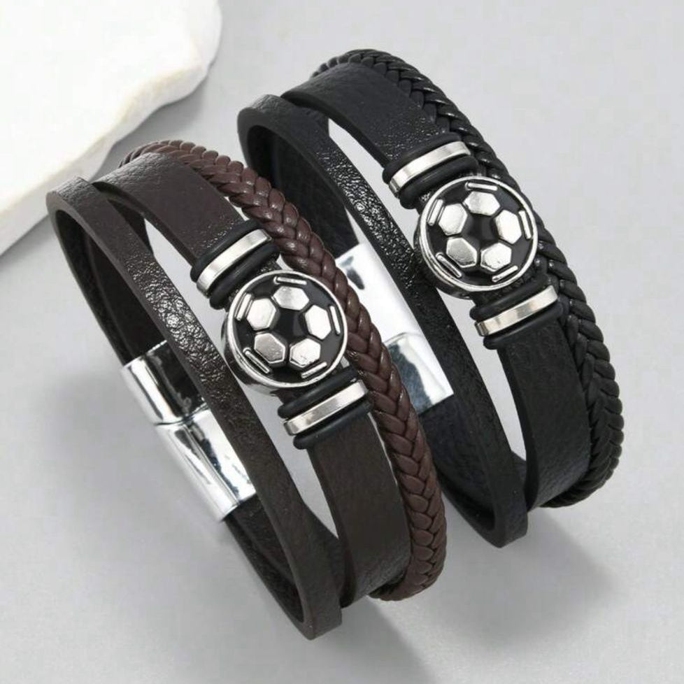 Pulsera De Cuero de Pelota De Fútbol Cierre de Imán